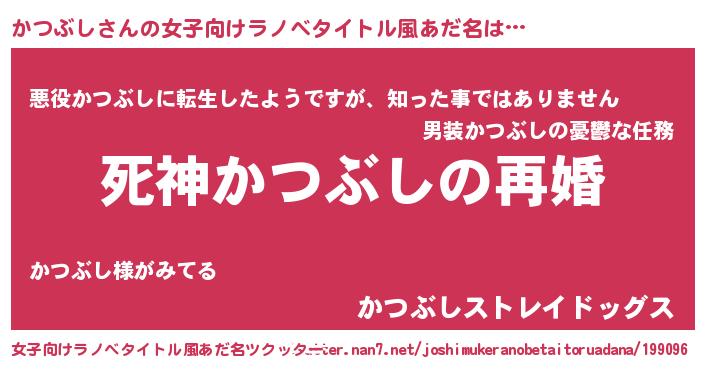 | 男性向けラノベタイトル風あだ名 | 『ノーゲーム・ノーカツブシ』 |