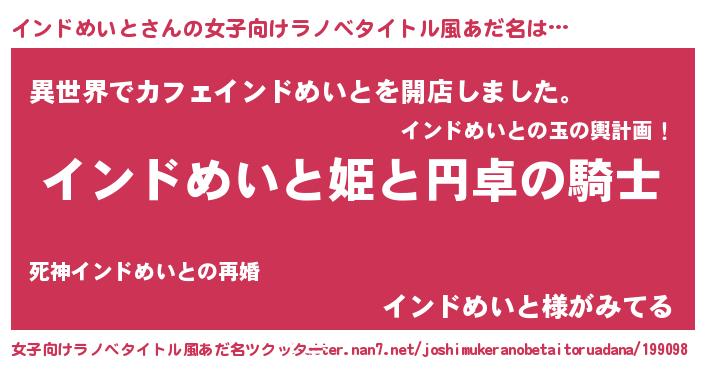 | 男性向けラノベタイトル風あだ名 | 『インドメイトアートオンライン』 |