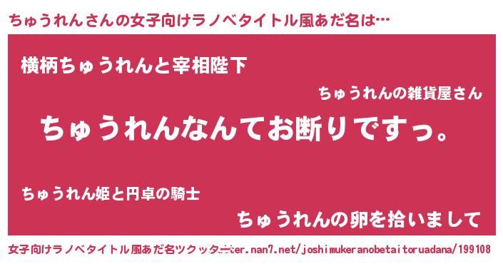 | 胡散臭い通販商品みたいなあだ名 | 『ガンによく効く高麗人参…その名も「ちゅうれん」』 |