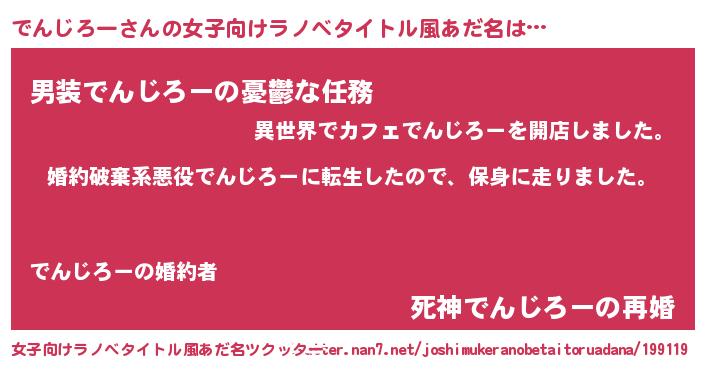 | ヘコむあだ名 | 『でんじろー(笑)』『なまこ酢』 |