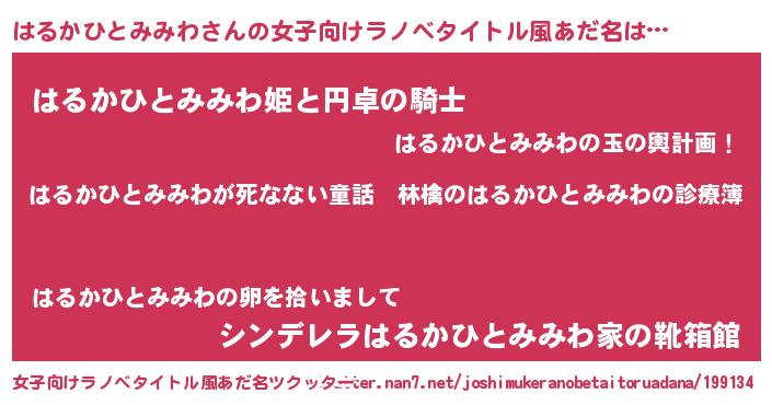 | 男性向けラノベタイトル風あだ名 | 『魔弾の王とはるかひとみみわ』 |