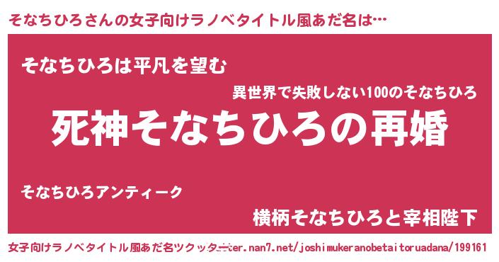 | 伝説のあだ名 | 『救世主となる占い師そなちひろ』 |