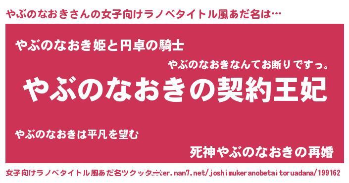 | 男性向けラノベタイトル風あだ名 | 『誰もが恐れるあのやぶのなおきが、ぼくの専属メイドになるようです。』 |