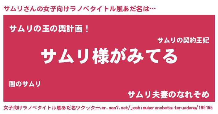 | 男性向けラノベタイトル風あだ名 | 『サムリの嫁は女の子じゃないと思った?』 |