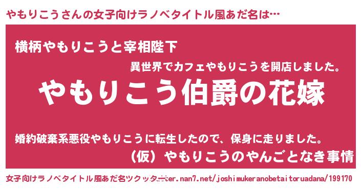 | 男性向けラノベタイトル風あだ名 | 『やはりやもりこうの青春ラブコメはまちがっている 』 |