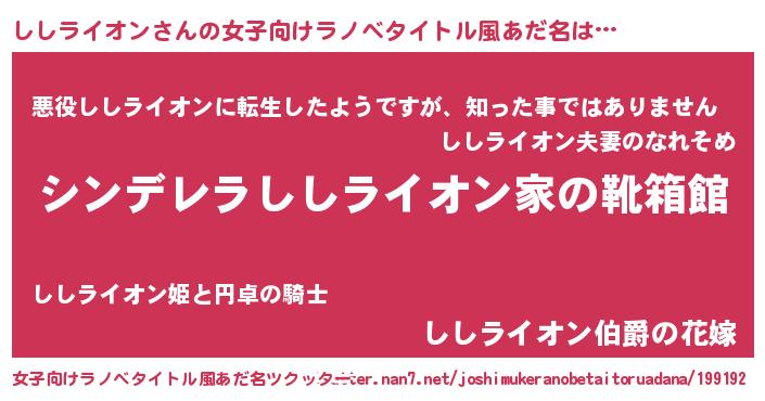 | 小説 | 最初の1行『ししライオン「噂はいつだってそういうものだ。」』 |