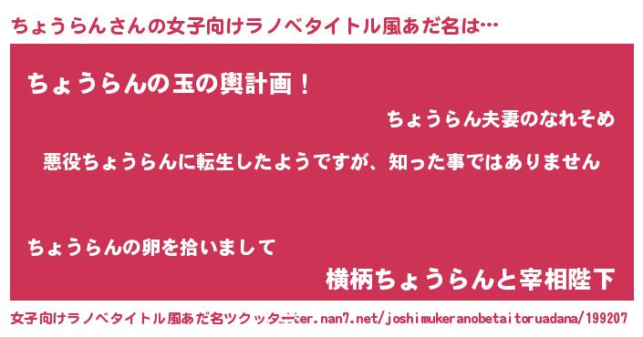 | 意味不明あだ名 | 『住所不定無職ちょうらん(56歳)』 |