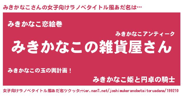 | 男性向けラノベタイトル風あだ名 | 『やはりみきかなこの青春ラブコメはまちがっている 』 |