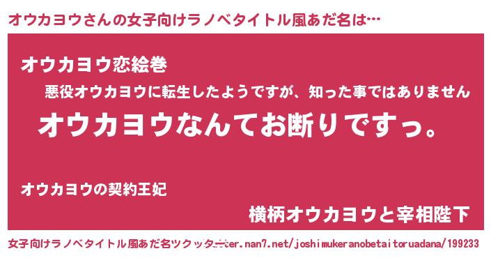 | ヘコむあだ名 | 『オウカヨウ(震え声)』『オウ太郎』 |