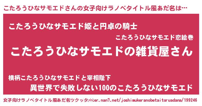 | 男性向けラノベタイトル風あだ名 | 『やはりこたろうひなサモエドの青春ラブコメはまちがっている 』 |