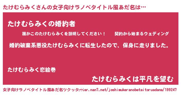 | 男性向けラノベタイトル風あだ名 | 『タケムラミクスレイヤー』 |
