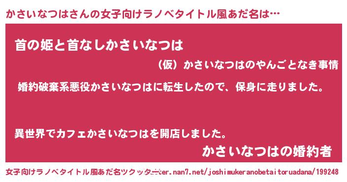 | 男性向けラノベタイトル風あだ名 | 『転生したらかさいなつはだった件』 |
