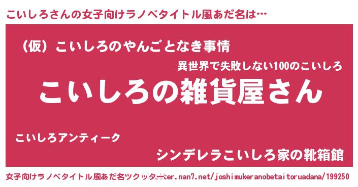 | 男性向けラノベタイトル風あだ名 | 『やはりこいしろの青春ラブコメはまちがっている 』 |