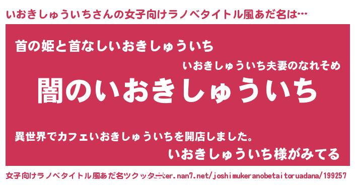 | 男性向けラノベタイトル風あだ名 | 『Re:いおきしゅういちから始める異世界生活』 |