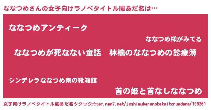 | 恥ずかしいあだ名 | 『ナナツメデラックス』『ナナリンリン』 |