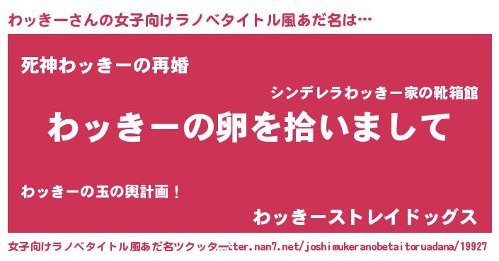 | 男性向けラノベタイトル風あだ名 | 『ダンジョンにわッきーを求めるのは間違っているだろうか』 |