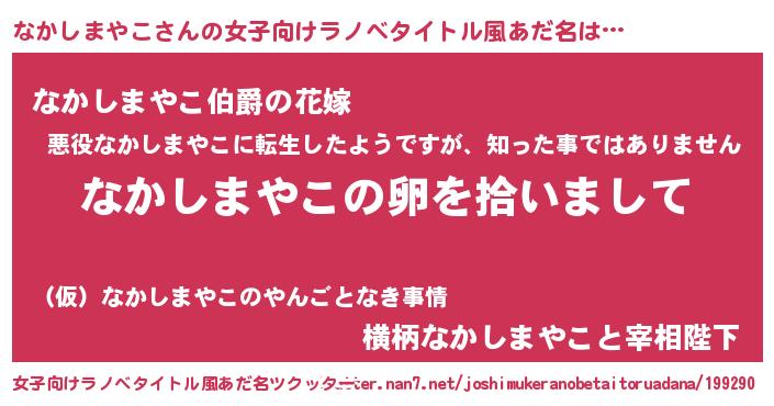| 男性向けラノベタイトル風あだ名 | 『ダンジョンになかしまやこを求めるのは間違っているだろうか』 |