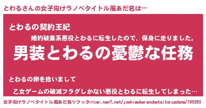 | ヘコむあだ名 | 『とわる(小並感)』『とわを』 |