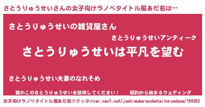 | ポケモン風あだ名 | 『ヒサトウリュウセイ』『サトウダネ』 |