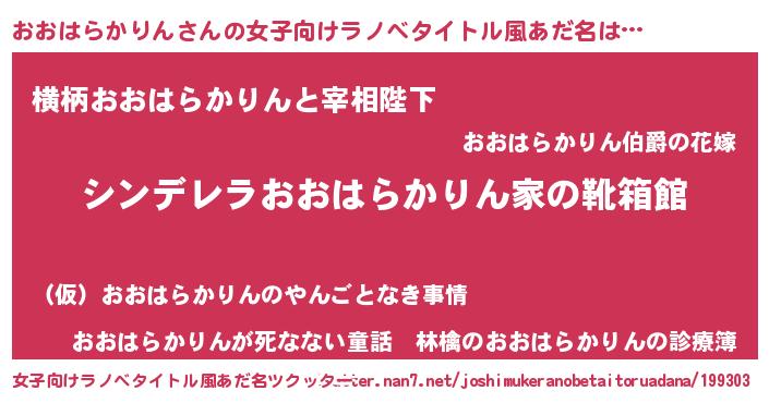 | 意味不明あだ名 | 『住所不定無職おおはらかりん(74歳)』 |
