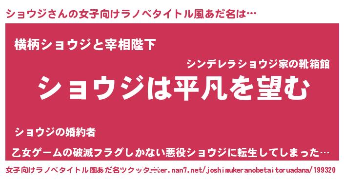 | 胡散臭い通販商品みたいなあだ名 | 『信頼と実績のサプリメント…その名も「ショウジ」』 |