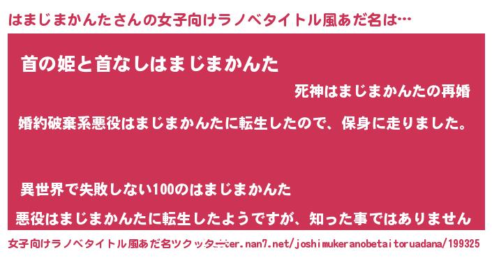 | 男性向けラノベタイトル風あだ名 | 『ハマジマカンタスレイヤー』 |