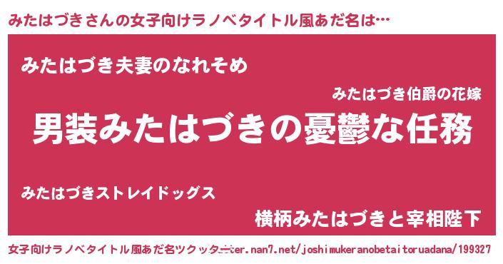 | 男性向けラノベタイトル風あだ名 | 『うちのみたはづきが世界を掌握している!』 |