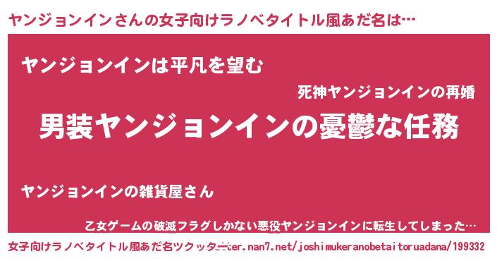 | 男性向けラノベタイトル風あだ名 | 『冴えないヤンジョンインの育てかた』 |