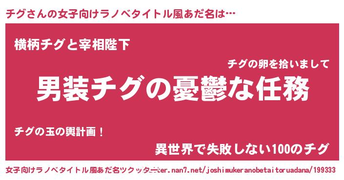 | 男性向けラノベタイトル風あだ名 | 『うちのチグが世界を掌握している!』 |