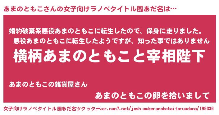 | 男性向けラノベタイトル風あだ名 | 『あまのともこに滅ぼされるだけの簡単なお仕事です』 |