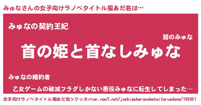 | 男性向けラノベタイトル風あだ名 | 『はたらくみゅなさま!』 |