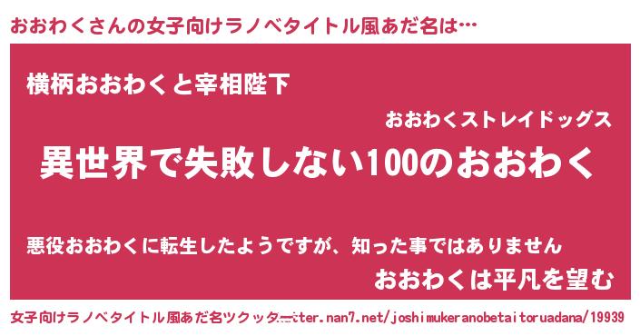 | 胡散臭い通販商品みたいなあだ名 | 『絶対に幸福をもたらす水素水…その名も「おおわく」』 |