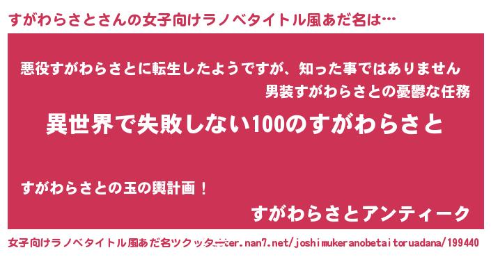 | 男性向けラノベタイトル風あだ名 | 『すがわらさとという概念が存在しない退屈な世界 』 |