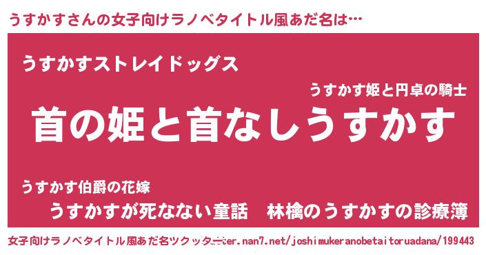| 意味不明あだ名 | 『自称うすかす』『ペロリンうすかす』 |