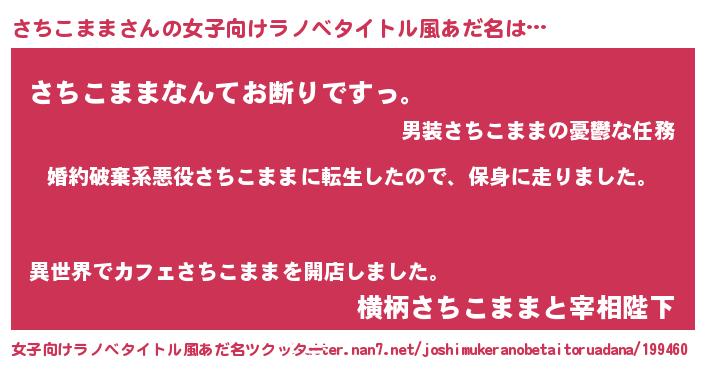 | 男性向けラノベタイトル風あだ名 | 『転生したらさちこままだった件』 |