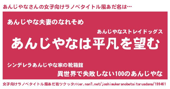 | 男性向けラノベタイトル風あだ名 | 『ダンジョンにあんじやなを求めるのは間違っているだろうか』 |