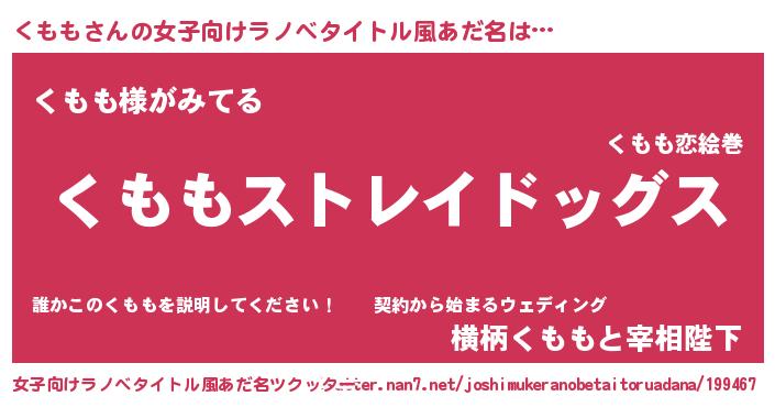 | ヘコむあだ名 | 『くもっ子』『くももー』『なまこ酢』 |