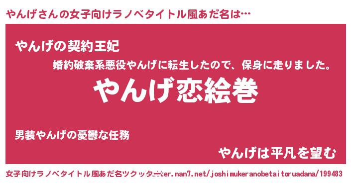 | 男性向けラノベタイトル風あだ名 | 『ノーゲーム・ノーヤンゲ』 |