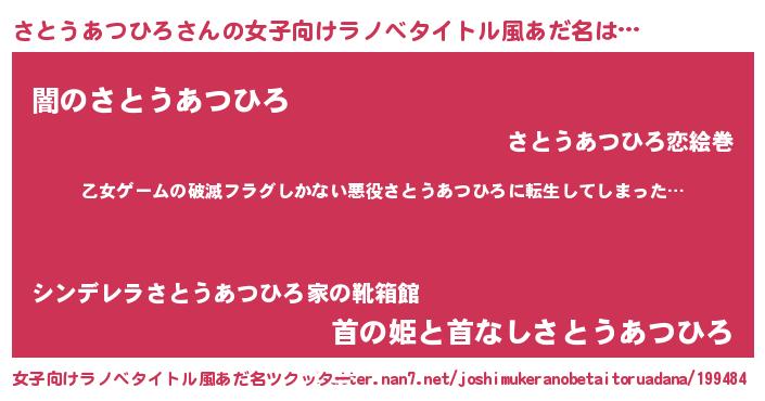 | 意味不明あだ名 | 『住所不定無職さとうあつひろ(95歳)』 |