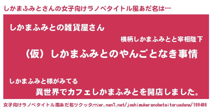 | 胡散臭い通販商品みたいなあだ名 | 『必ず成功するブレスレット…その名も「しかまふみと」』 |