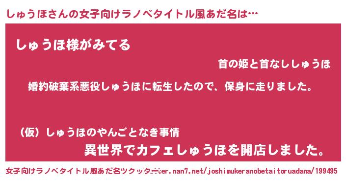 | 胡散臭い通販商品みたいなあだ名 | 『伝統あるサプリメント…その名も「しゅうほ」』 |