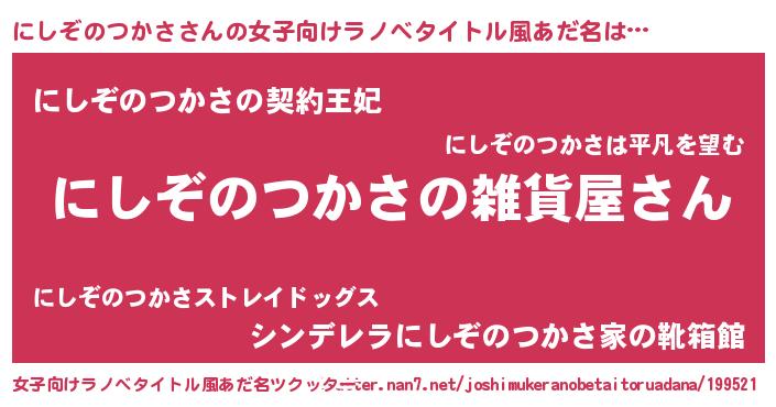 | 意味不明あだ名 | 『にしぞのつかさフォーエバー』 |