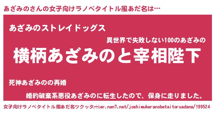 | 男性向けラノベタイトル風あだ名 | 『あざみのに滅ぼされるだけの簡単なお仕事です』 |