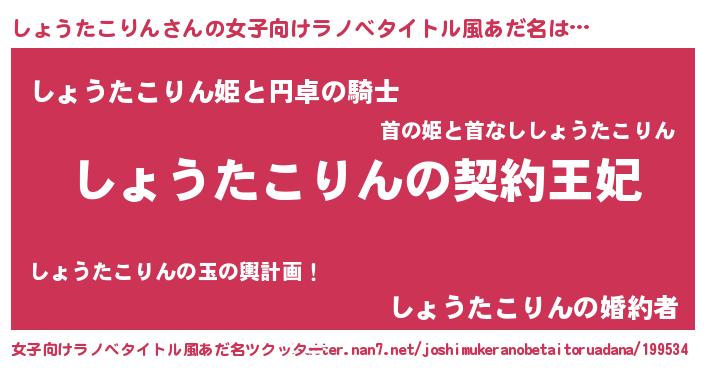 | 男性向けラノベタイトル風あだ名 | 『しょうたこりんという概念が存在しない退屈な世界 』 |