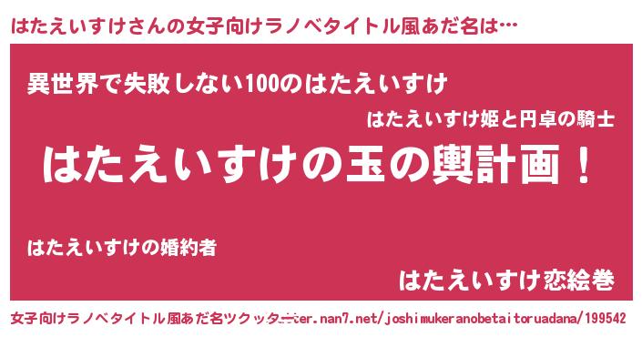 | 男性向けラノベタイトル風あだ名 | 『はたえいすけ~年齢イコール彼女いない歴の魔法使い~』 |