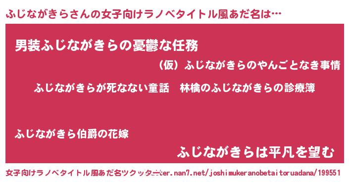 | 意味不明あだ名 | 『住所不定無職ふじながきら(6歳)』 |