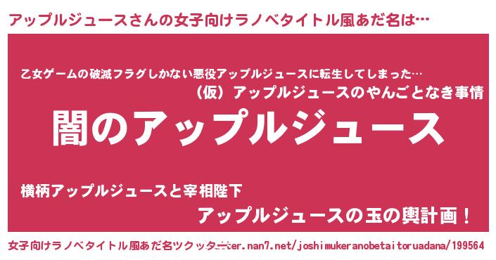 | 男性向けラノベタイトル風あだ名 | 『Re:アップルジュースから始める異世界生活』 |