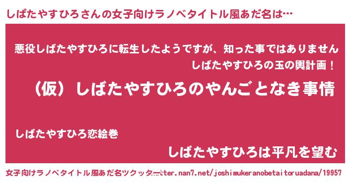 | 男性向けラノベタイトル風あだ名 | 『しばたやすひろの憂鬱』 |
