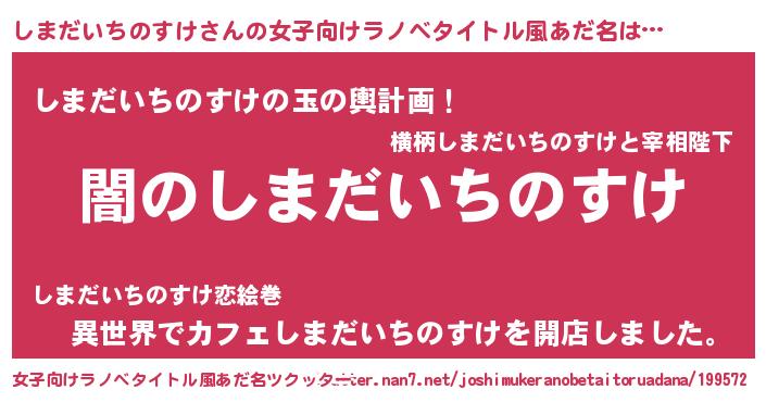 | 男性向けラノベタイトル風あだ名 | 『Re:しまだいちのすけから始める異世界生活』 |