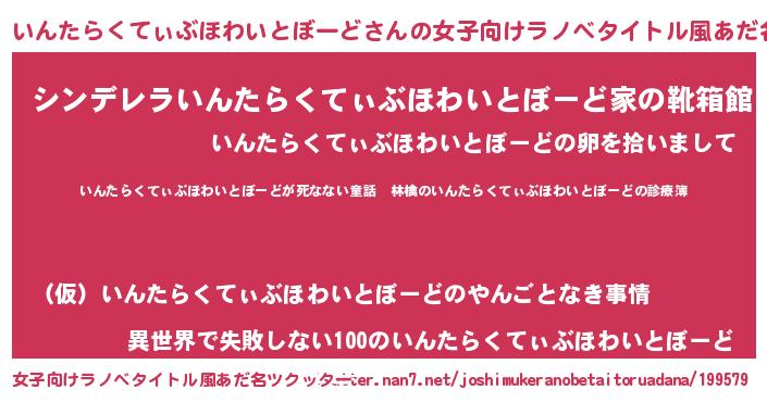 | 胡散臭い通販商品みたいなあだ名 | 『ハリウッド女優が絶賛した100年もののヴィンテージワイン…その名も「いんたらくてぃぶほわいとぼーど」』 |